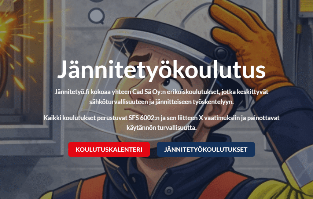 Perustimme jännitetyökoulutus.fi-sivuston, jotta jännitetyöhön liittyvät koulutukset olisivat asiakkaillemme selkeästi ja helposti löydettävissä yhtenä kokonaisuutena. Jännitetyöt ovat vaativa ja erityisosaamista edellyttävä alue, jonka koulutukset ansaitsevat oman, niihin keskittyvän kokonaisuuden.